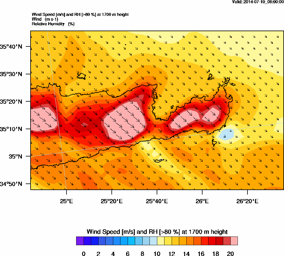 Graph 5: arw020.png - Wind Speed [m/s] and RH [>80%] at 1700 m height