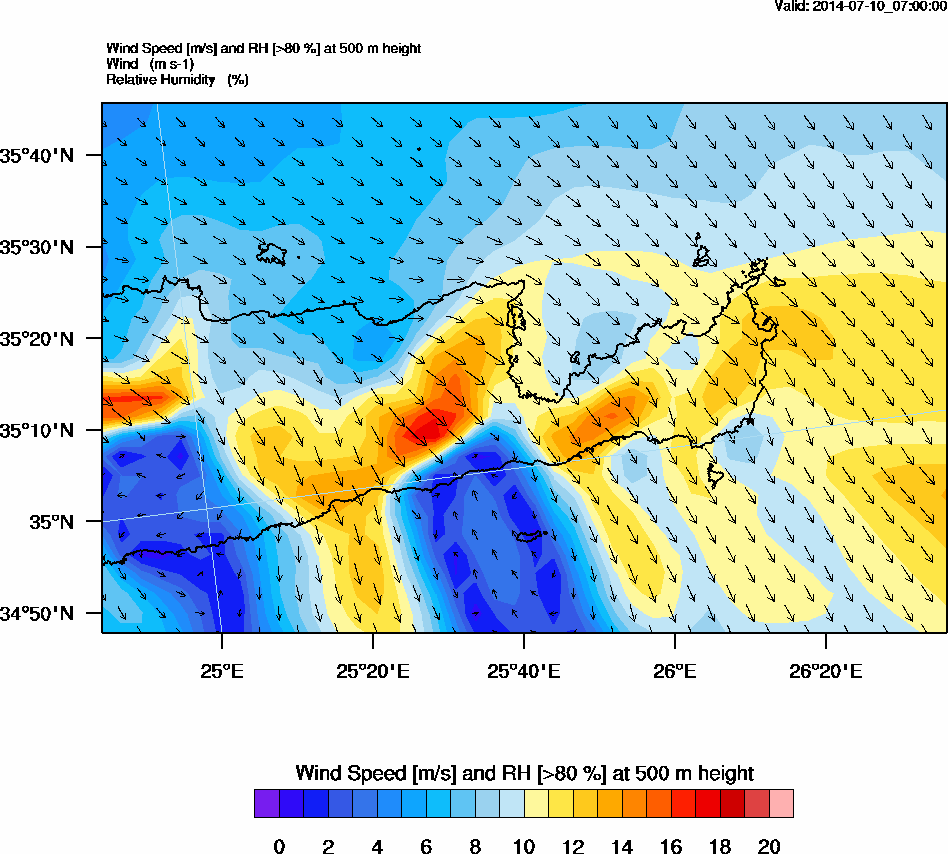 Graph 2: arw022.png - Wind Speed [m/s] and RH [>80%] at 500 m height
