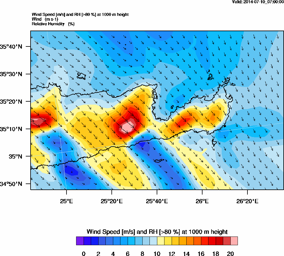 Graph 3: arw023.png - Wind Speed [m/s] and RH [>80%] at 1000 m height