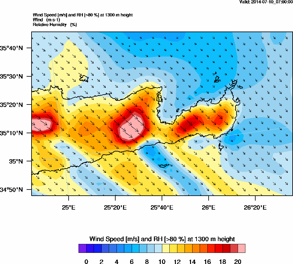 Graph 4: arw024.png - Wind Speed [m/s] and RH [>80%] at 1300 m height