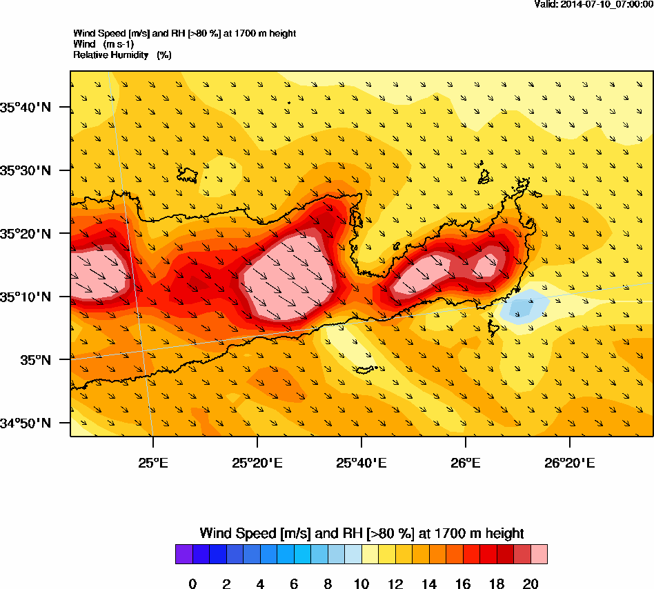 Graph 5: arw025.png - Wind Speed [m/s] and RH [>80%] at 1700 m height