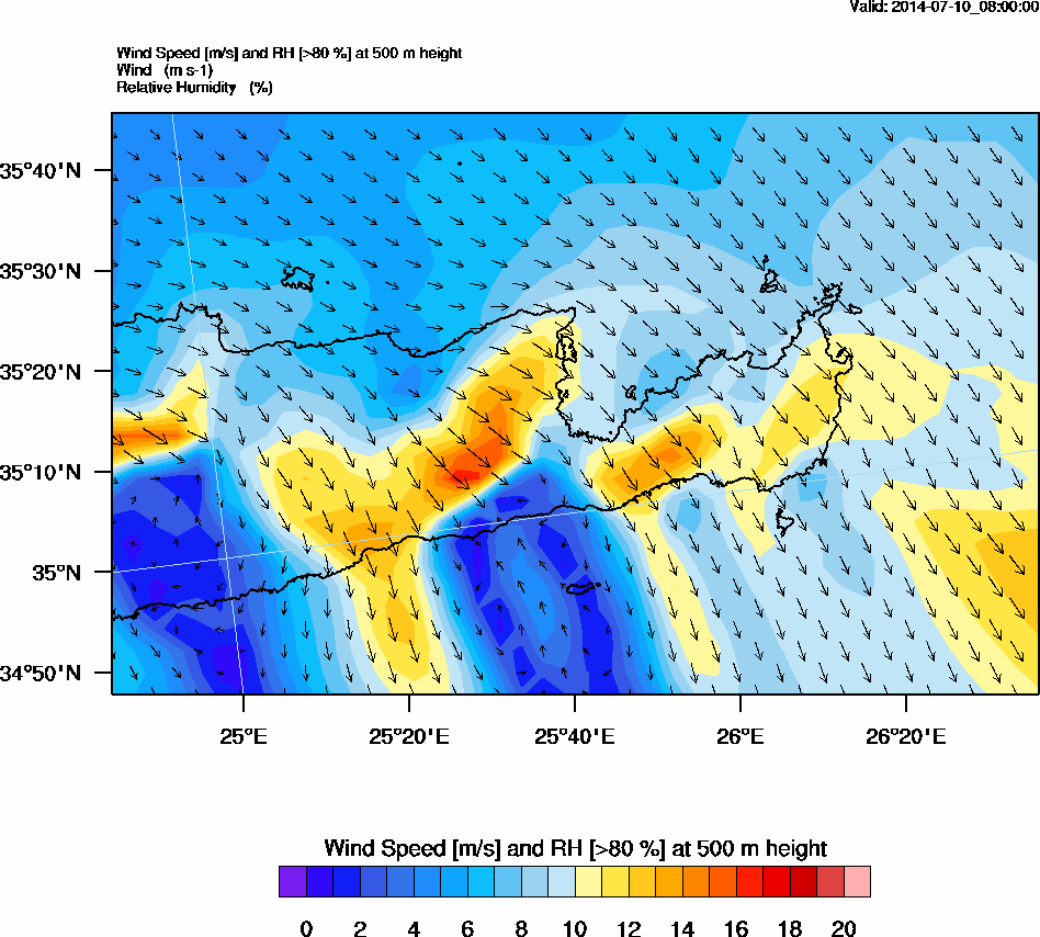Graph 2: arw027.png - Wind Speed [m/s] and RH [>80%] at 500 m height