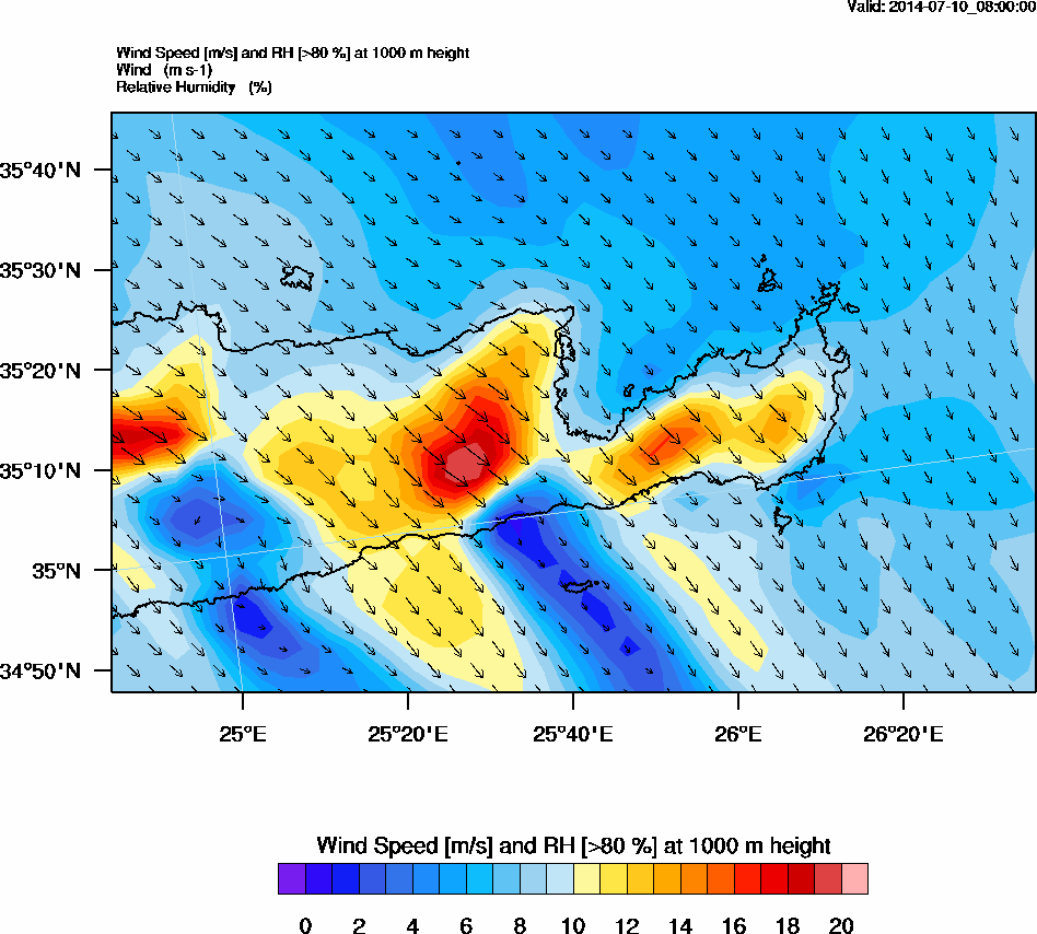 Graph 3: arw028.png - Wind Speed [m/s] and RH [>80%] at 1000 m height