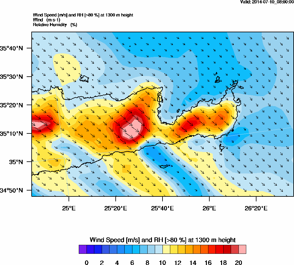 Graph 4: arw029.png - Wind Speed [m/s] and RH [>80%] at 1300 m height