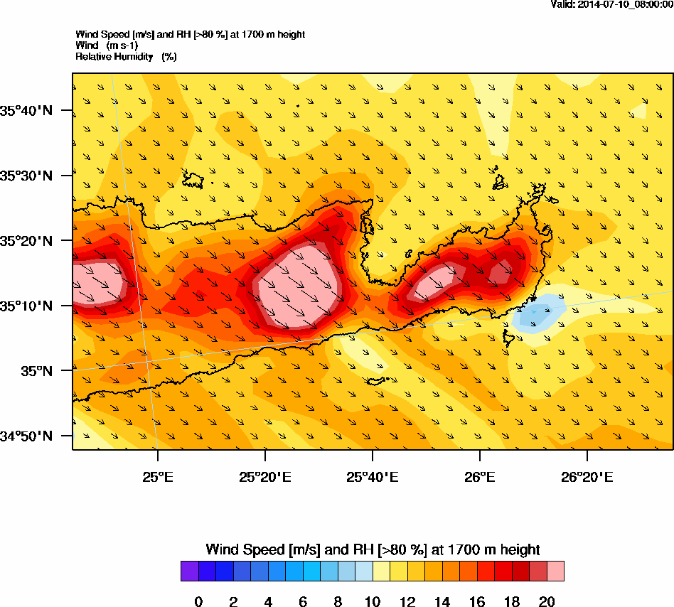 Graph 5: arw030.png - Wind Speed [m/s] and RH [>80%] at 1700 m height