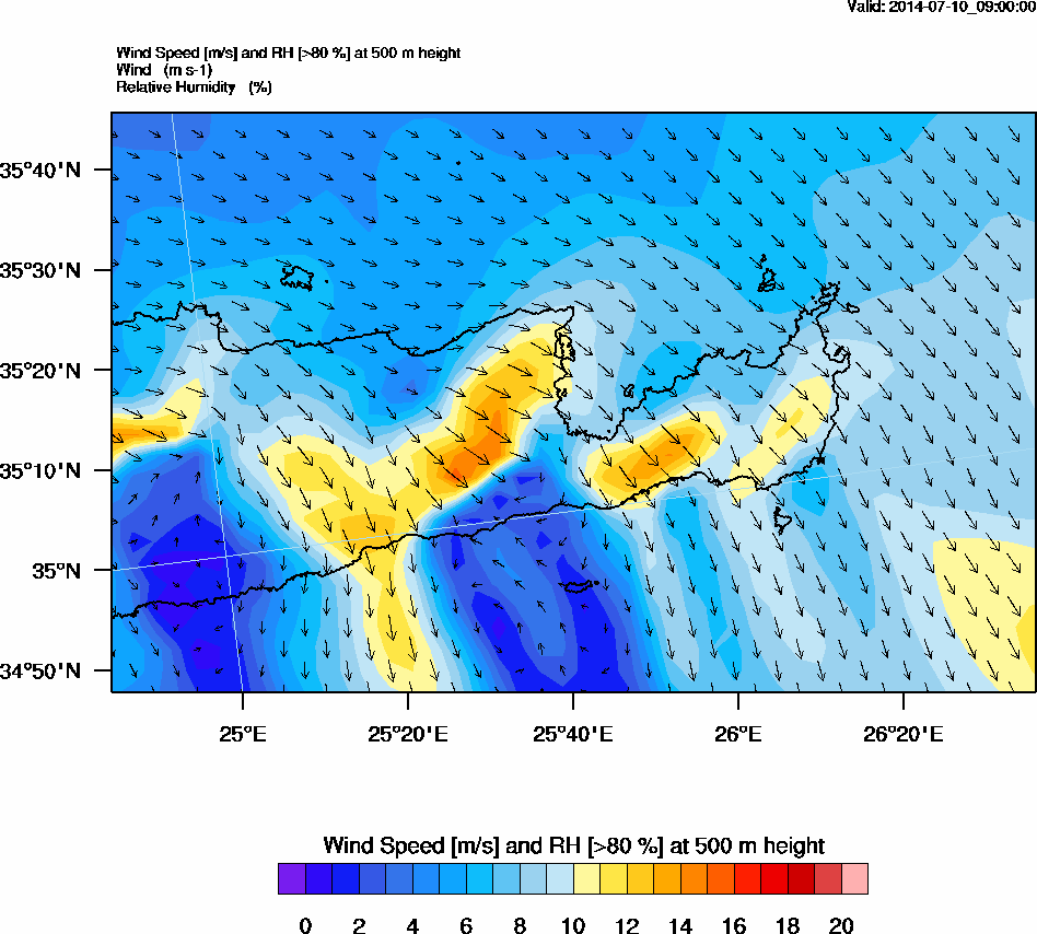 Graph 2: arw032.png - Wind Speed [m/s] and RH [>80%] at 500 m height