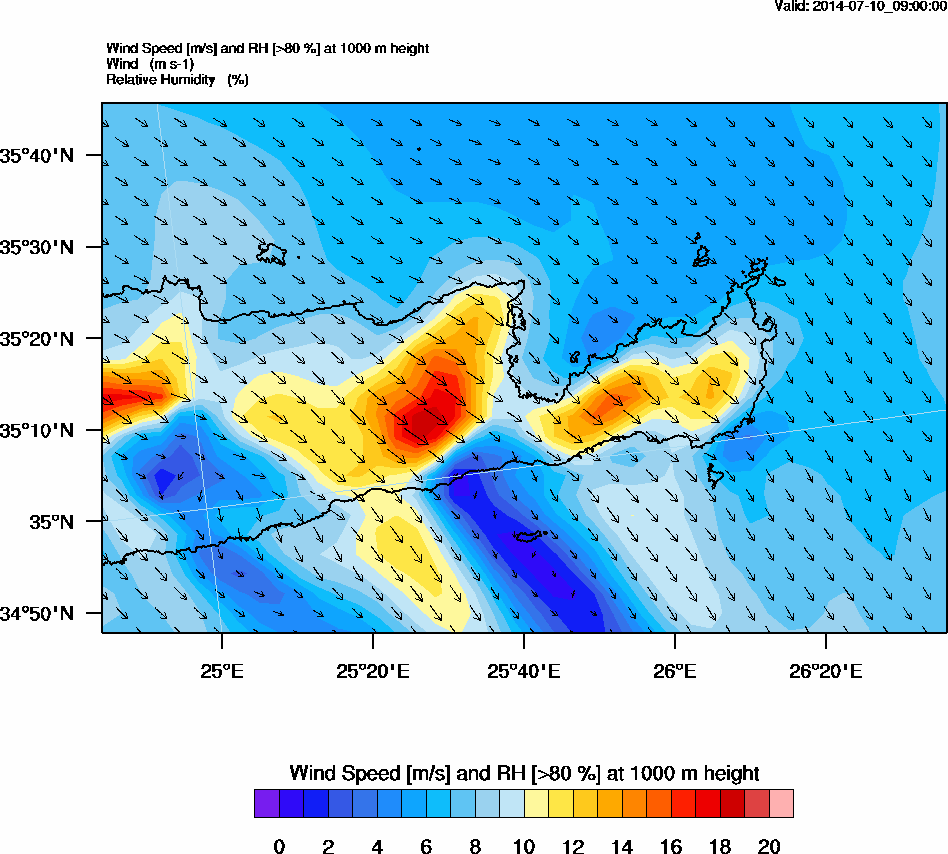 Graph 3: arw033.png - Wind Speed [m/s] and RH [>80%] at 1000 m height