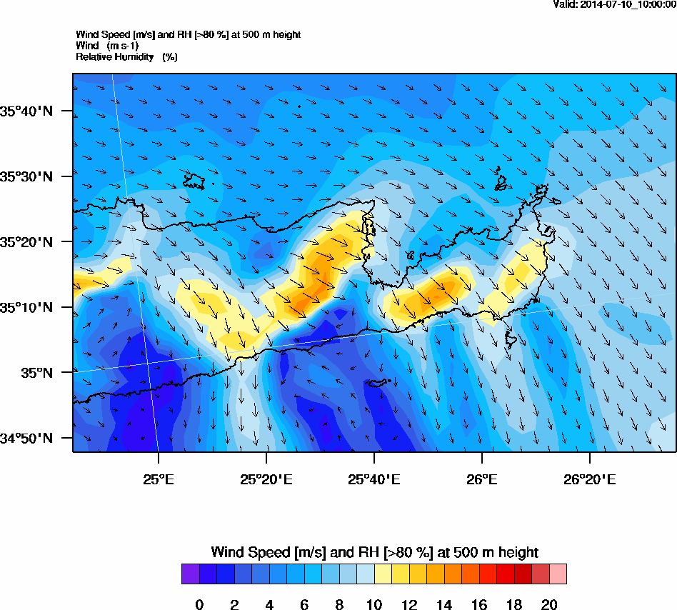 Graph 2: arw037.png - Wind Speed [m/s] and RH [>80%] at 500 m height