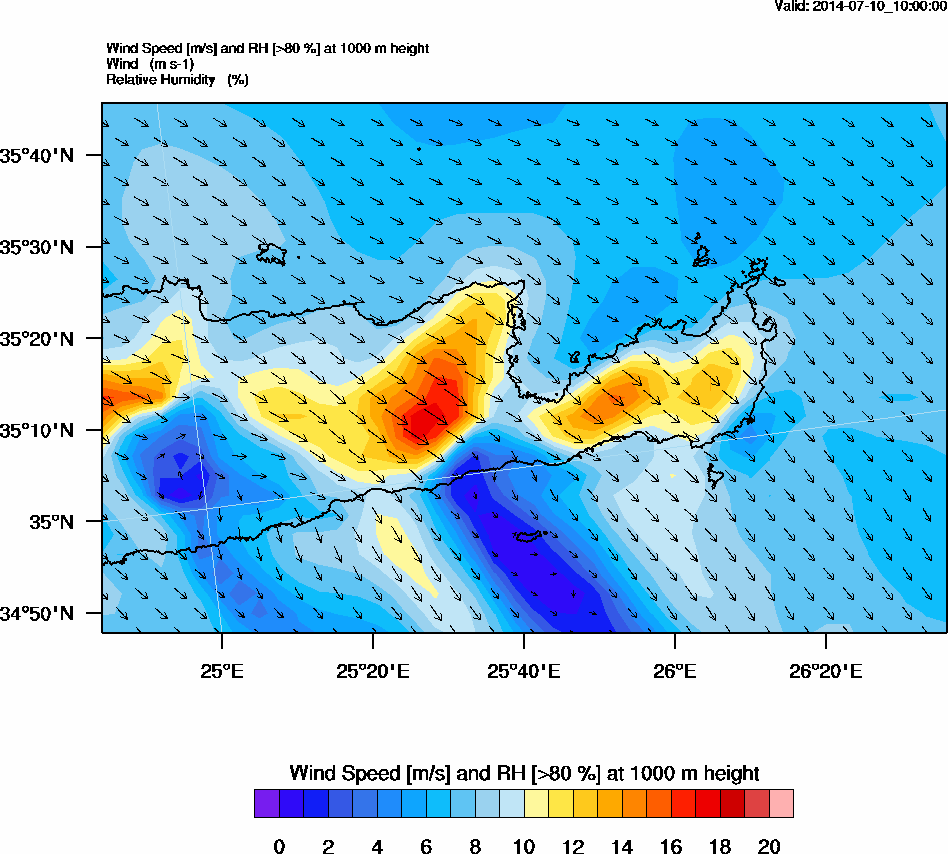 Graph 3: arw038.png - Wind Speed [m/s] and RH [>80%] at 1000 m height
