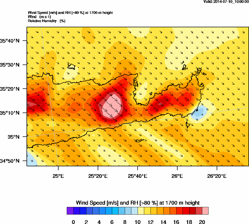 Graph 5: arw040.png - Wind Speed [m/s] and RH [>80%] at 1700 m height