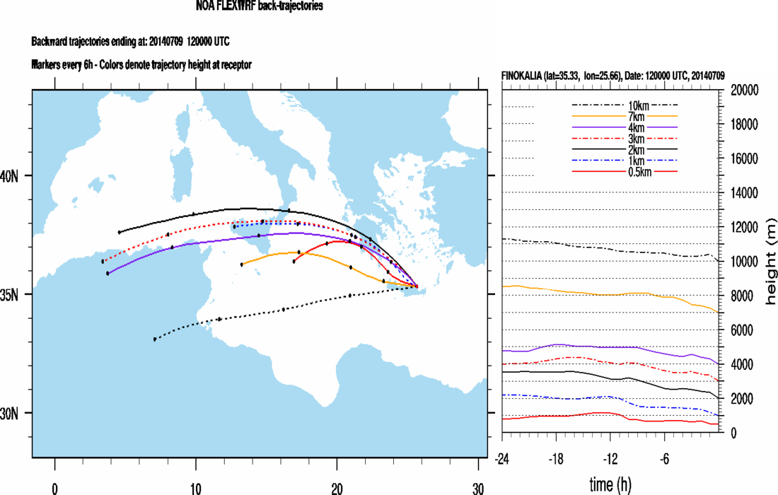 Graph 1: Backtrajectories forecast for Finokalia (+ 24 h)