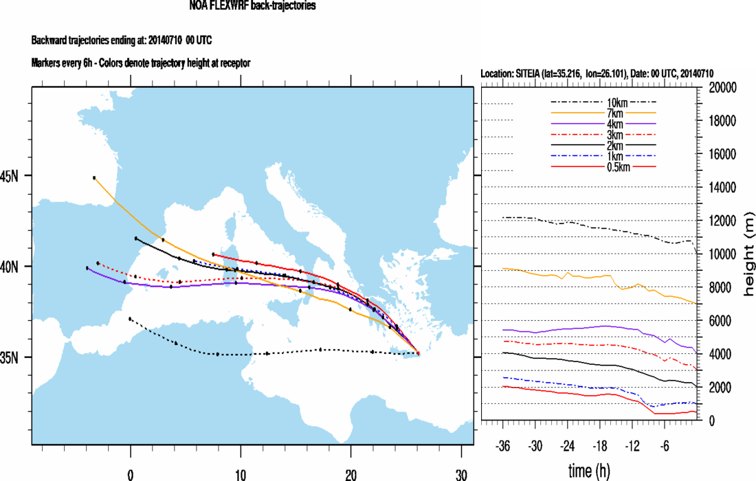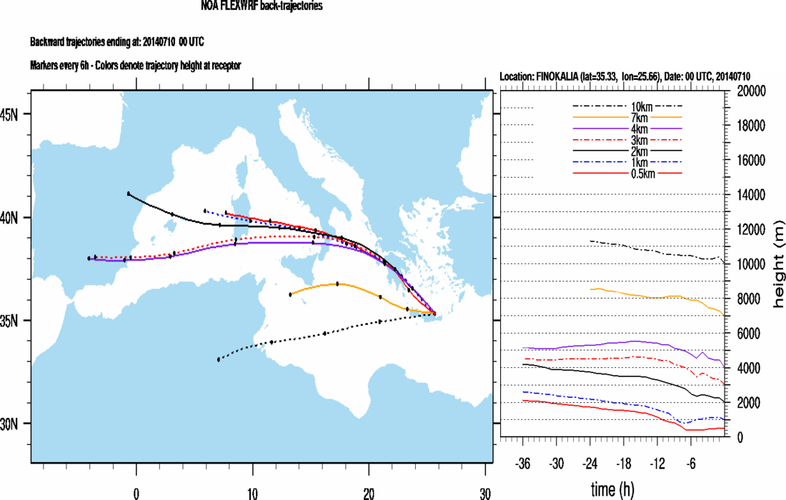 Graph 2: Backtrajectories forecast for Finokalia (+ 36 h)