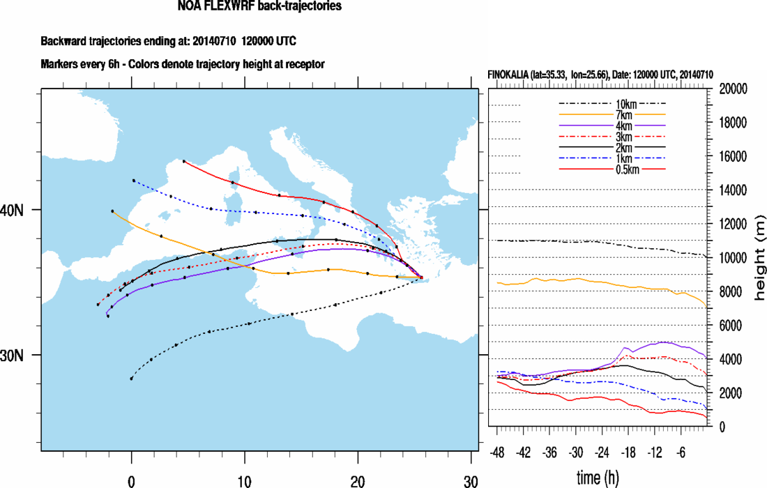 Graph 3: Backtrajectories forecast for Finokalia (+ 48 h)