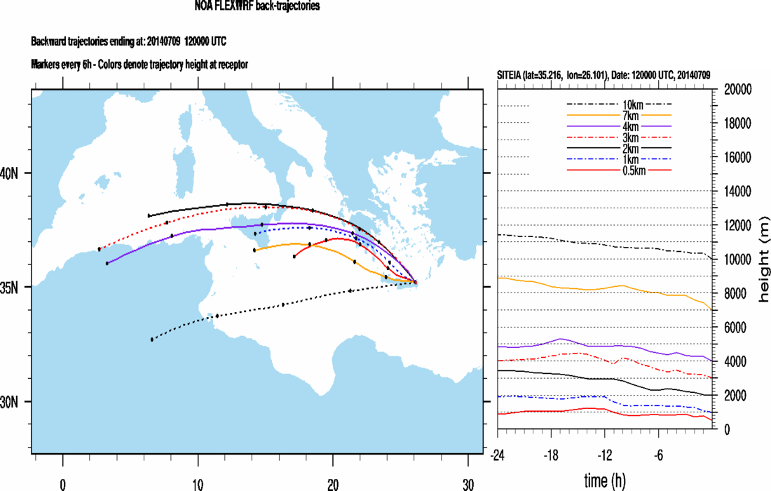 Graph 4: Backtrajectories forecast for Sitia (+ 24 h)