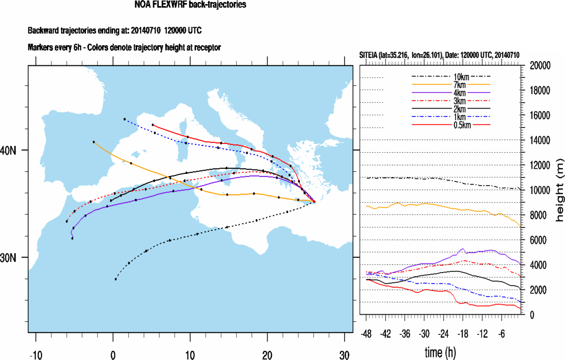 Graph 6: Backtrajectories forecast for Sitia (+ 48 h)
