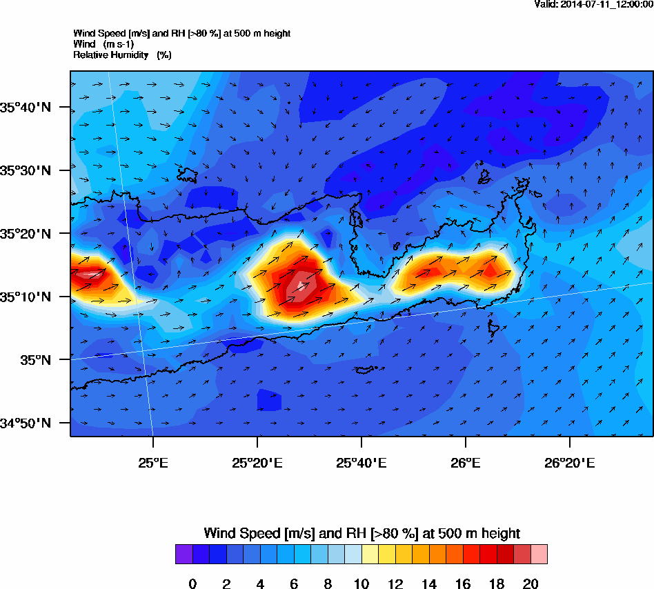 Graph 2: arw047.png - Wind Speed [m/s] and RH [>80%] at 500 m height
