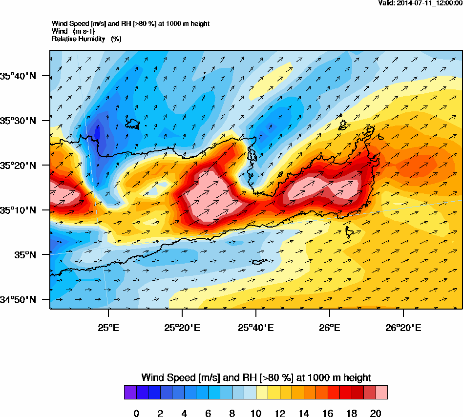 Graph 3: arw048.png - Wind Speed [m/s] and RH [>80%] at 1000 m height