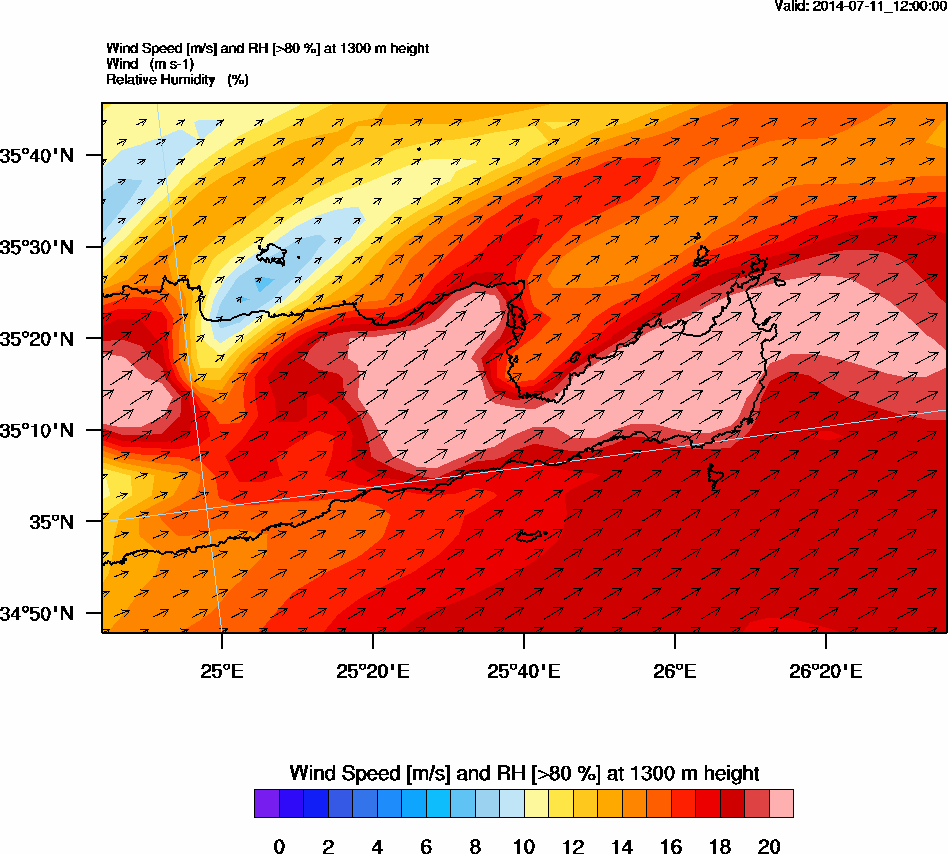Graph 4: arw049.png - Wind Speed [m/s] and RH [>80%] at 1300 m height