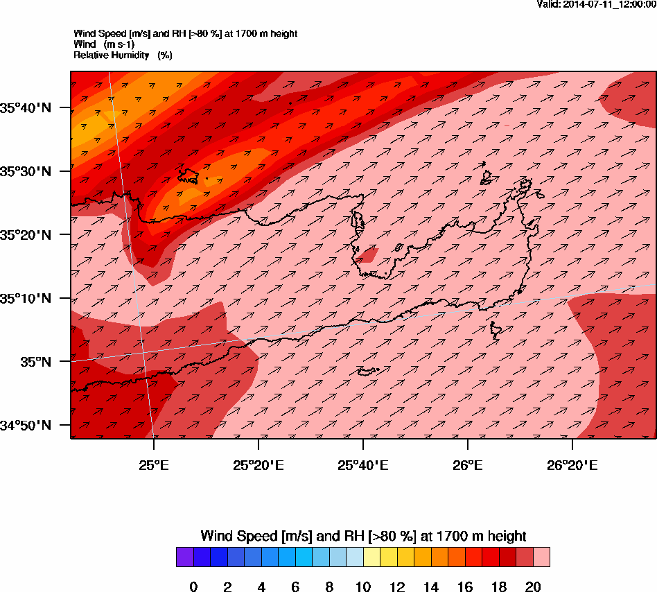 Graph 5: arw050.png - Wind Speed [m/s] and RH [>80%] at 1700 m height