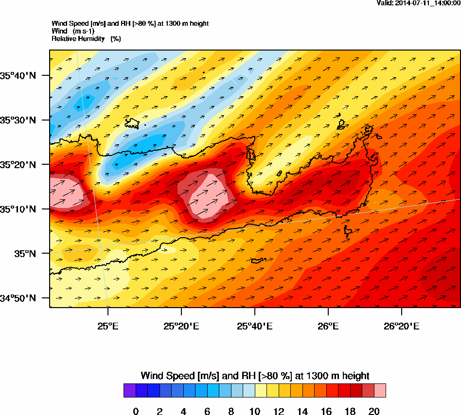 Graph 4: arw059.png - Wind Speed [m/s] and RH [>80%] at 1300 m height