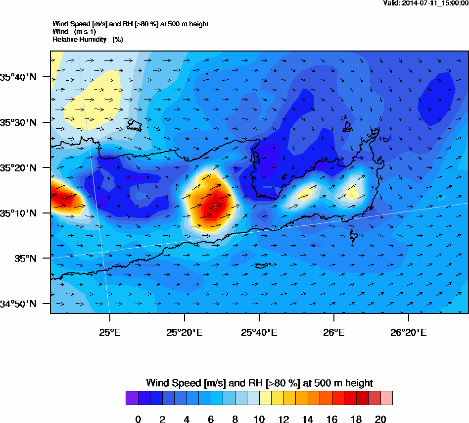 Graph 2: arw062.png - Wind Speed [m/s] and RH [>80%] at 500 m height