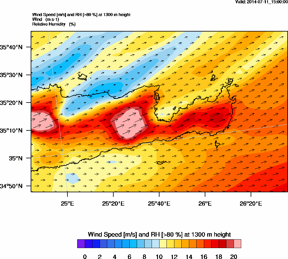 Graph 4: arw064.png - Wind Speed [m/s] and RH [>80%] at 1300 m height