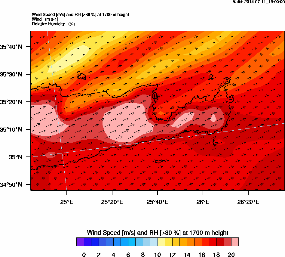 Graph 5: arw065.png - Wind Speed [m/s] and RH [>80%] at 1700 m height