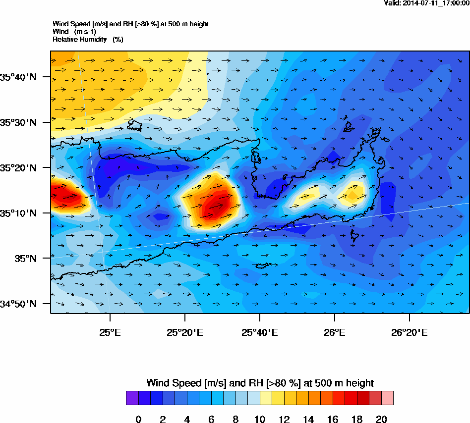 Graph 2: arw072.png - Wind Speed [m/s] and RH [>80%] at 500 m height