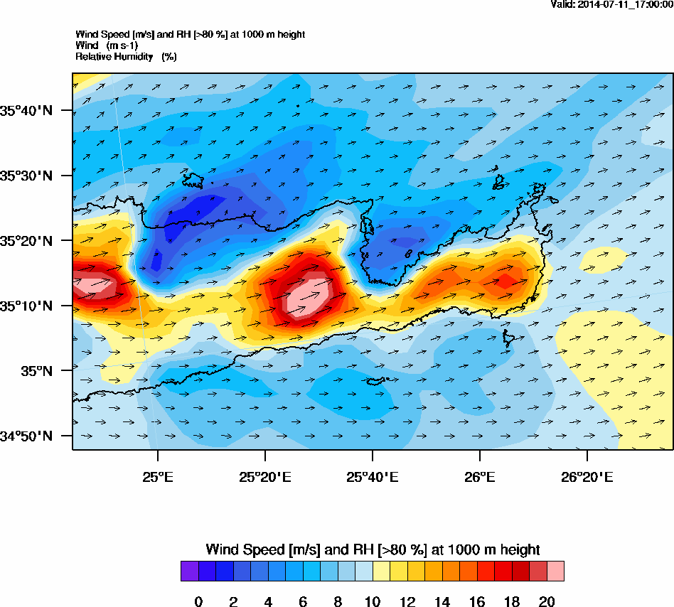 Graph 3: arw073.png - Wind Speed [m/s] and RH [>80%] at 1000 m height