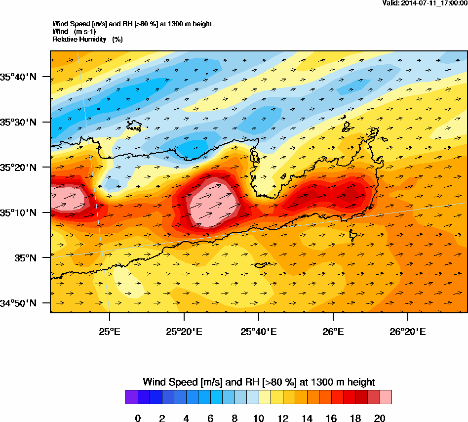 Graph 5: arw075.png - Wind Speed [m/s] and RH [>80%] at 1700 m height