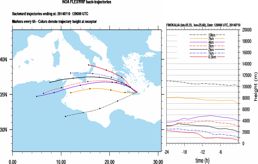 Graph 1: Backtrajectories forecast for Finokalia (+ 24 h)