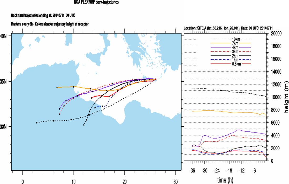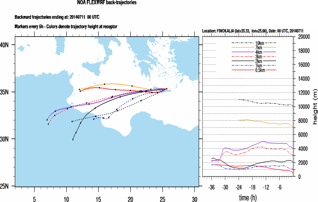 Graph 2: Backtrajectories forecast for Finokalia (+ 36 h)