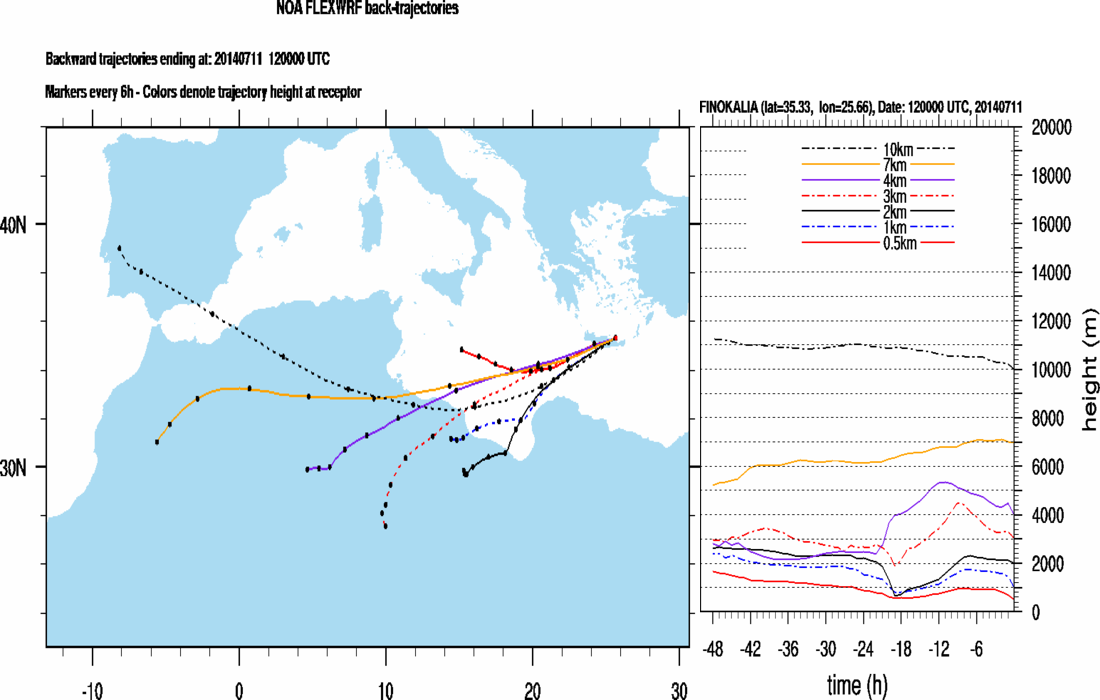 Graph 3: Backtrajectories forecast for Finokalia (+ 48 h)