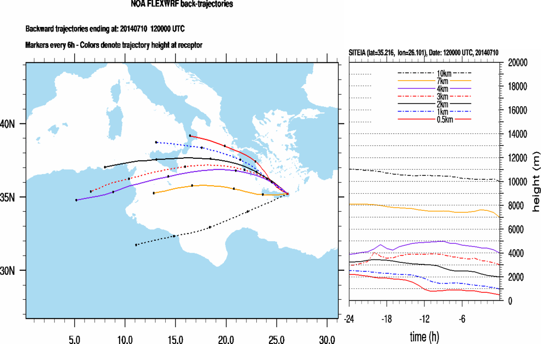 Graph 4: Backtrajectories forecast for Sitia (+ 24 h)
