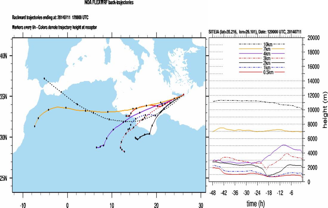 Graph 6: Backtrajectories forecast for Sitia (+ 48 h)
