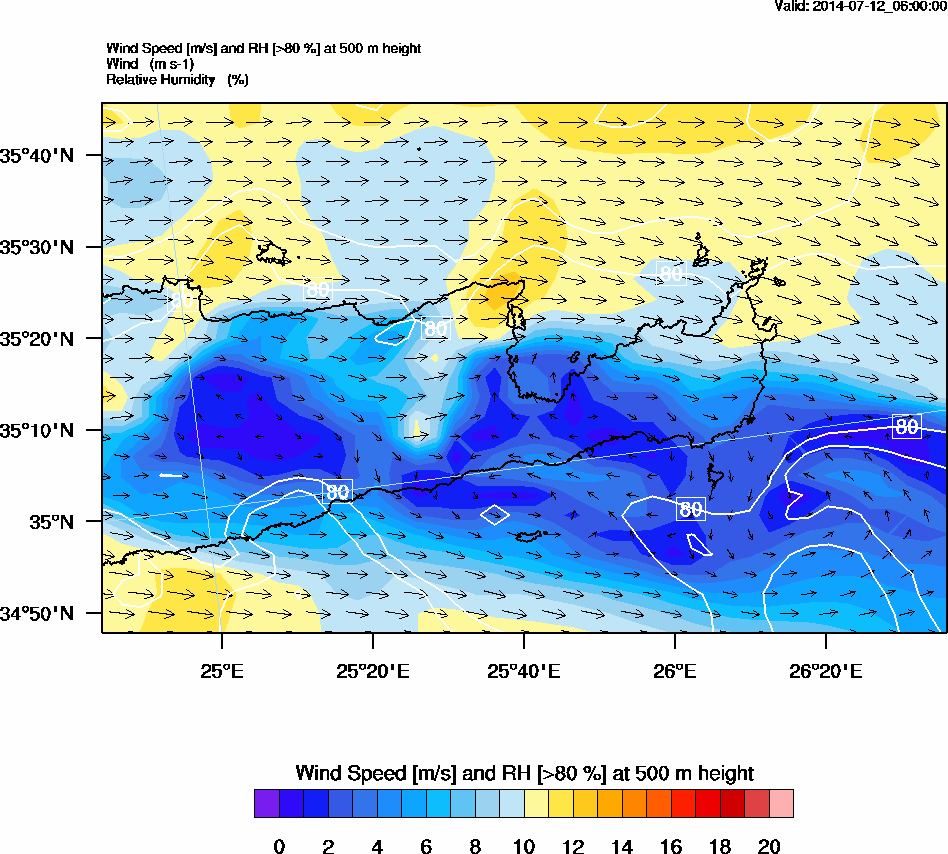 Graph 2: arw017.png - Wind Speed [m/s] and RH [>80%] at 500 m height