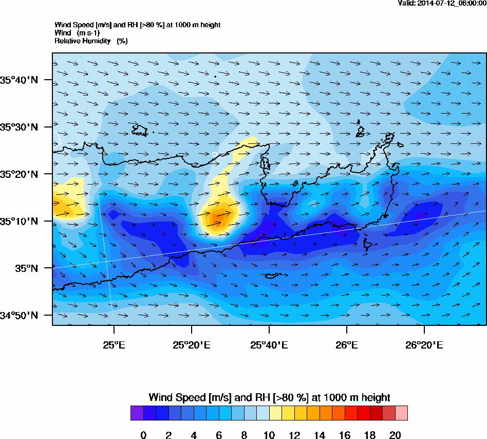 Graph 3: arw018.png - Wind Speed [m/s] and RH [>80%] at 1000 m height