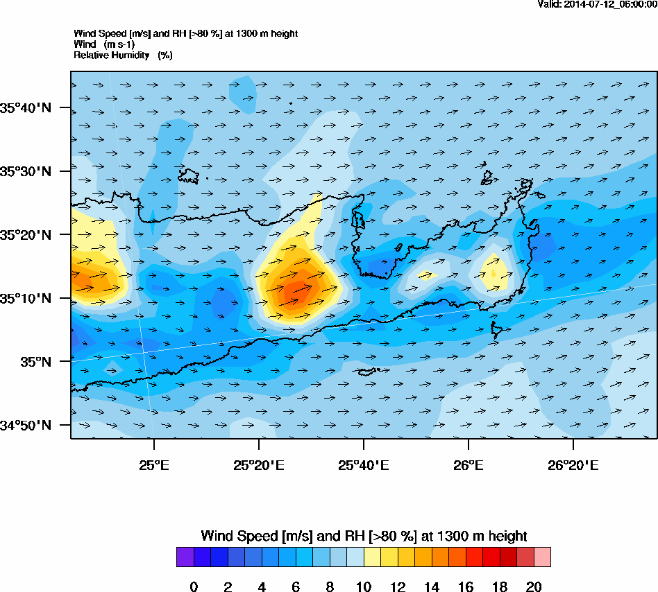 Graph 4: arw019.png - Wind Speed [m/s] and RH [>80%] at 1300 m height