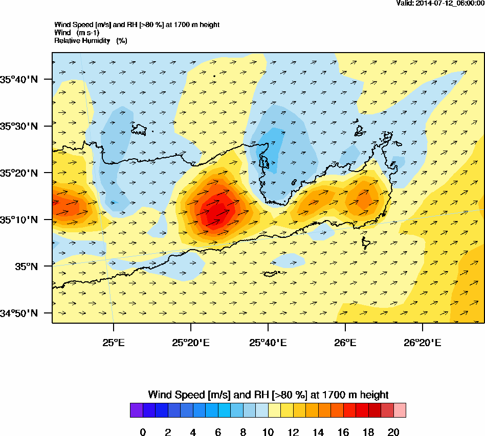 Graph 5: arw020.png - Wind Speed [m/s] and RH [>80%] at 1700 m height