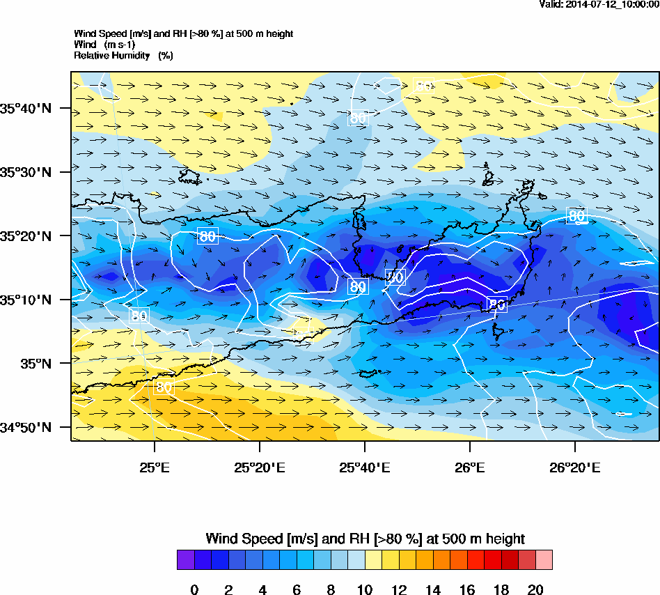 Graph 2: arw037.png - Wind Speed [m/s] and RH [>80%] at 500 m height