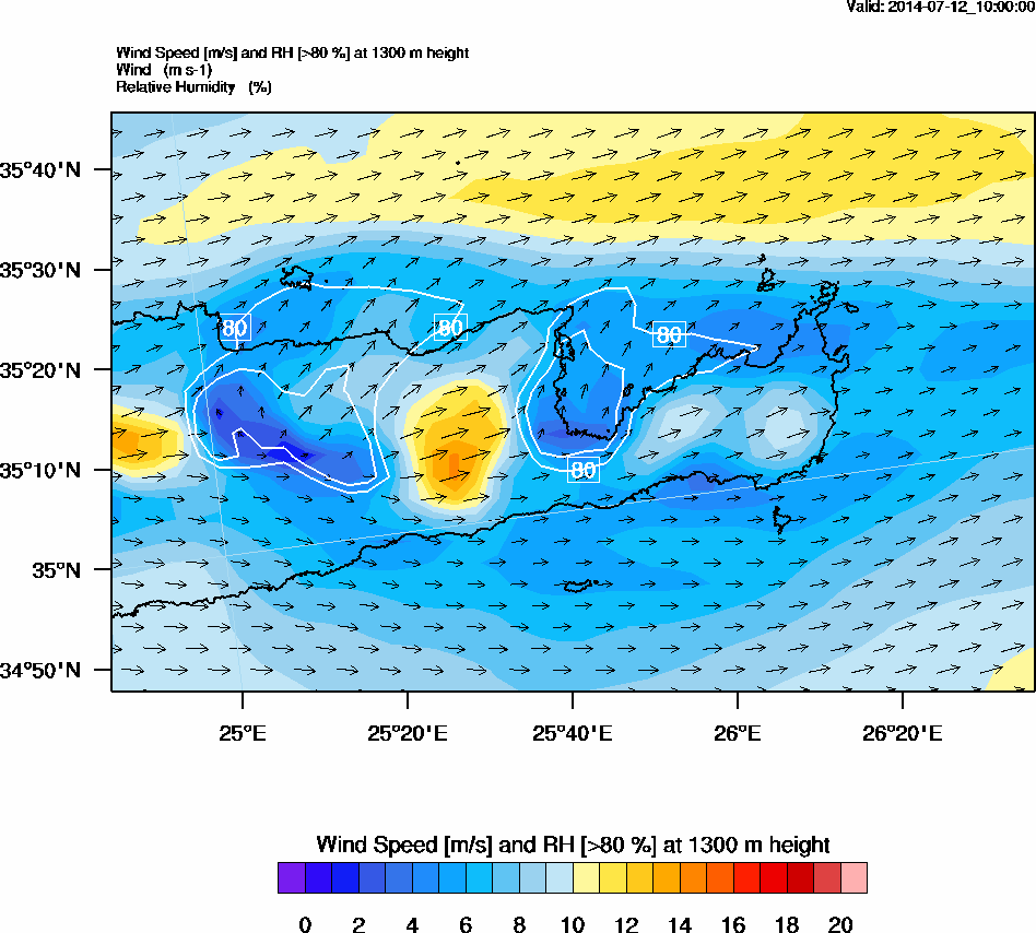 Graph 4: arw039.png - Wind Speed [m/s] and RH [>80%] at 1300 m height