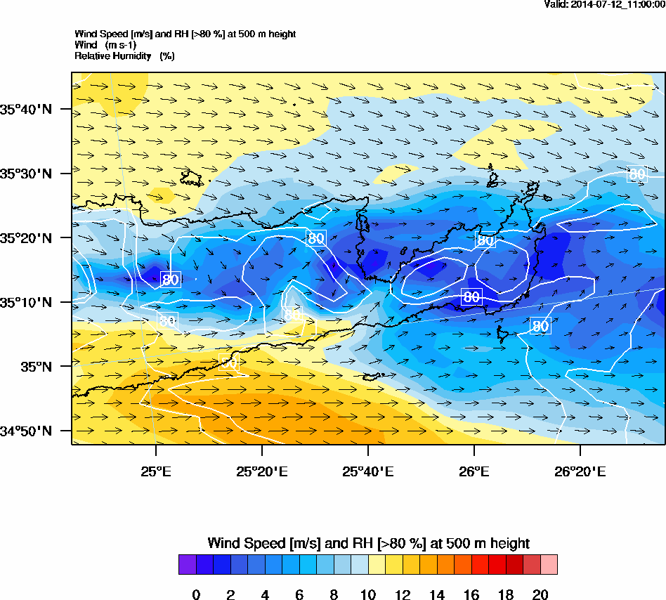 Graph 2: arw042.png - Wind Speed [m/s] and RH [>80%] at 500 m height