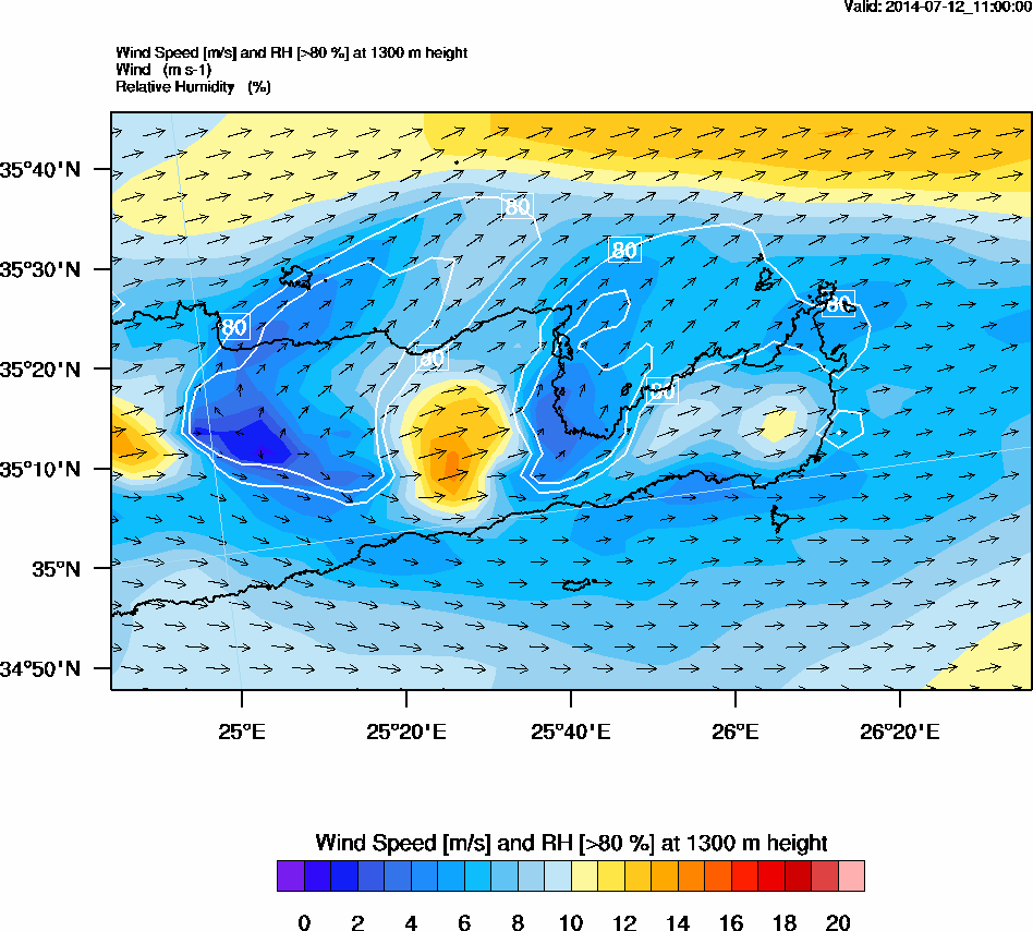 Graph 3: arw043.png - Wind Speed [m/s] and RH [>80%] at 1000 m height