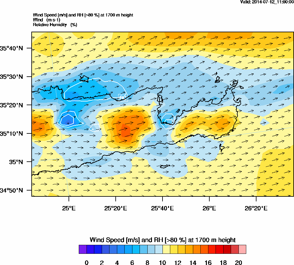 Graph 5: arw045.png - Wind Speed [m/s] and RH [>80%] at 1700 m height