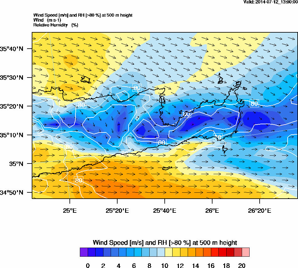 Graph 2: arw052.png - Wind Speed [m/s] and RH [>80%] at 500 m height