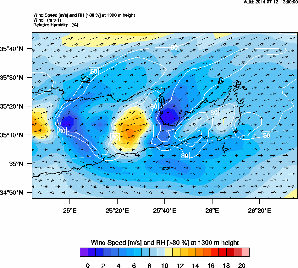 Graph 4: arw054.png - Wind Speed [m/s] and RH [>80%] at 1300 m height
