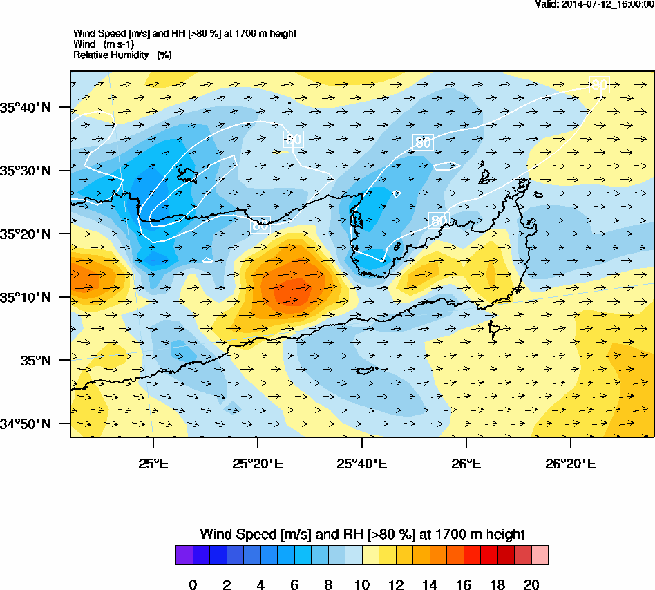 Graph 5: arw070.png - Wind Speed [m/s] and RH [>80%] at 1700 m height