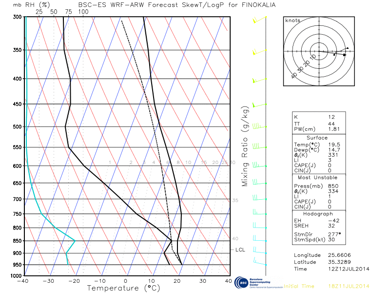 Graph 3: Skew-T diagram for 12:00 UTC