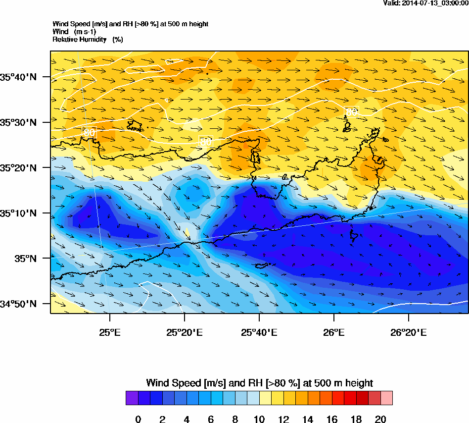 Graph 2: arw002.png - Wind Speed [m/s] and RH [>80%] at 500 m height