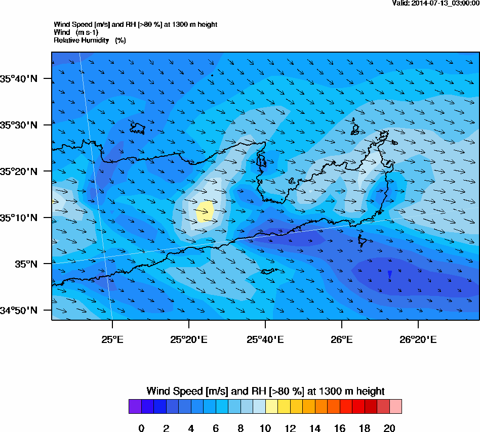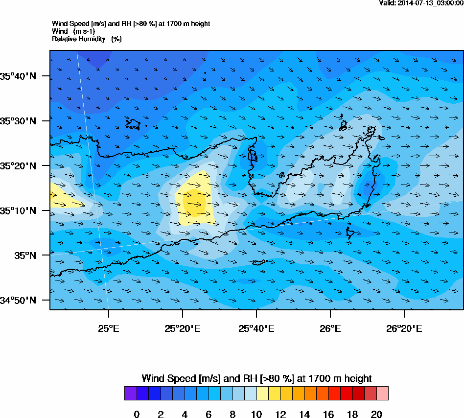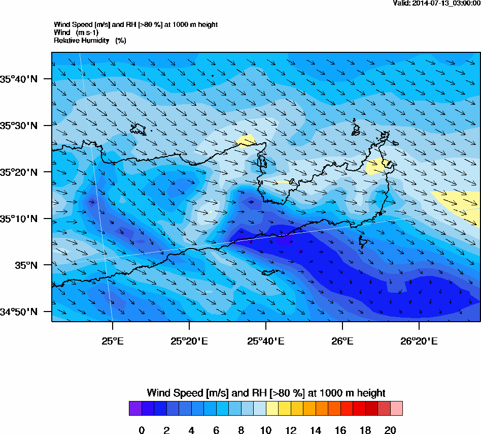 Graph 3: arw003.png - Wind Speed [m/s] and RH [>80%] at 1000 m height